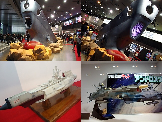 パチンコ・ヤマト3の製作発表を兼ねた『宇宙戦艦ヤマト』の一大イベントをやってました!どうりで街行く人がヤマトのショッパー持ってたり、ヤマトクルーのコスをしたキャンペンガールがうろついてた訳だ! まず目に入るのが会場入り口にどどーんと構えたヤマトの巨大オブジェ。周囲の人との対比でその大きさを測り知るべし! しかもこのオブジェ、一定の時間が来ると波動砲を発射します(いや勿論本当にはぶっ放ちませんよw)。さすがパチンコ業界、宣伝にかける金が半端無いです。 会場には多くのヤマト関連の模型が展示され、ファンならばこれだけのためにも見に行く価値十分です!