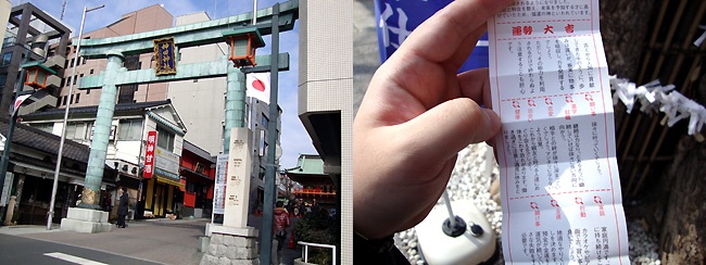 まず最初に訪れたのは神田明神。遅きに失した感もありますが初詣ですw 「今年もたくさんの萌えキャラとご縁がありますように!」 と五円玉を賽銭箱に投げ入れ、社務所に向かう巫女さんに鼻の下を伸ばしながらお御籤を・・・おぉっ!やった!大吉です♪ 健康:体を壊す恐れ有り 金運:地道なやりくりが肝心 賭け事:小さな失敗をする事も必要・・・これ本当に大吉?(^_^; と思いながらご神木に結び付けようとしたら・・・ビリッ(悲 今年もあんまり良い事無さそうです( ノД`)