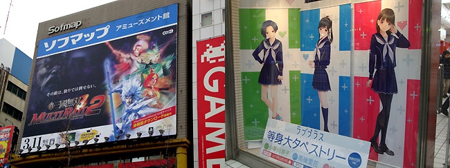 日曜深夜に張替えを行っていたソフマップアミューズメント館の巨大看板ですが、KOEIの『真・三国無双マルチレイド2』に替わってました。3月11日の発売日までは当面これですかね。