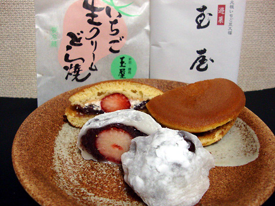 ちなみにいちご好きな唯衣さんへの誕生日プレゼントとして買って行ったのは、いちご大福の元祖として知られる名店『大角玉屋』のいちご大福といちご生クリームどら焼き(各5個)。すんげー美味そうだったので、自分用にも1つずつ買って来ました。