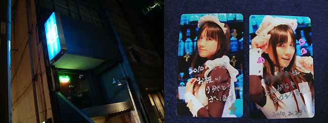 今日は唯衣さんのオリジナルカクテルを注文すると、生写真(2種)に直接メッセージを添えてプレゼントしてもらえるという特典もあったので、2杯飲んでしっかりコンプリート。うん、猫耳で萌えを強調するよりも、普段のクール美人の唯衣さんの方がらしいですな♡ ちなみに今日の店内上映映画は『ダイ・ハード4』。ゆりのさん曰く“唯衣たすはおっさんが血まみれになる映画が好き”なんだそうです(;´∀`)