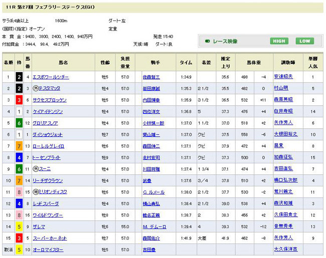さて本日、競馬界では今年最初のJRA・GT、フェブラリーステークス(府中ダート1600m)が開催されました。