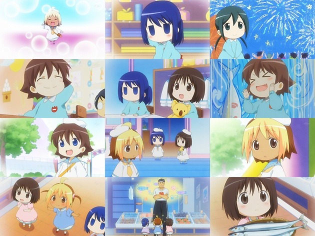 Aパートは他の園児の掘り下げ話・・・ネギま!みたいに園児全員に個性やキャラ付けがあったりして。 さて、夏休み明けのはなまる幼稚園・・・ぎゃーす!杏がガングロになっとる(;´д`) ガングロ茶髪で男のケツを追い回し・・・杏終了のお知らせ。母親が母親なら、娘も娘だな(悪役の教頭が言いそうな台詞)。替わりに照れ照れひーちゃんが可愛くて荒んだ心が癒されました♪ 夏休みの思い出について発表しあう中、家が魚屋の葵はどこにも出掛けていませんでした。家業の魚屋を心から愛する葵は、どこかに出掛けるよりも家の手伝いをしたがるのですが、まだ小さいからと親から手伝わせてもらえず・・・ その日の帰りに葵の家の魚屋に寄った3人娘は、ひょんなことから店を手伝う事に。小梅ちゃんに奨められたらサンマだろうがシーラカンスだろうがモササウルスだろうが買っちゃるぜ!!