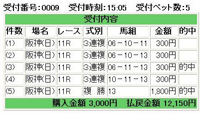 これぞ快心の一撃!◎○△で三連複ドンピシャ!&複勝のオマケ付き!!(≧▽≦)
