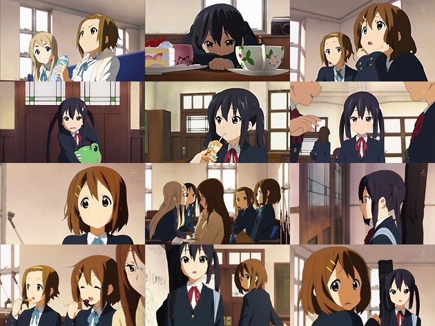 完璧なライブで自信満々の面々。これなら新入部員が次々と音楽室の扉を開けるはず・・・ですが、全くの閑古鳥。それは音楽室前に唯が置いたゲコ太のせいではなくw、どうやら5人の息がぴったり過ぎて、他の人が入って行けない空気になってしまったためのようで。思わぬ問題ですな。つーか紙パックジュースを差し出されてそのままちゅーちゅー飲むあずにゃんが可愛い過ぎて余裕で2回死ねる。 遅れているあずにゃんを除いて、新入部員問題を討議する軽音部の面々。しかし唯は「今のままのメンバーで続けたい」と語り、また、あずにゃんがいない所で彼女を気遣ったりと、いかにあずにゃんを大事にしているかを垣間見せます。それを偶然入り口で聞いていたあずにゃんも「このままの5人で続けたい」と、結局新入部員問題は先送りし、当面5人で放課後ティータイムは続く事に。まぁここで原作無視して勝手にメンバー増やしちゃマズいだろうしw つーかこのしっかりさを鑑みるに、部長は律よりもあずにゃんの方が良くね?w