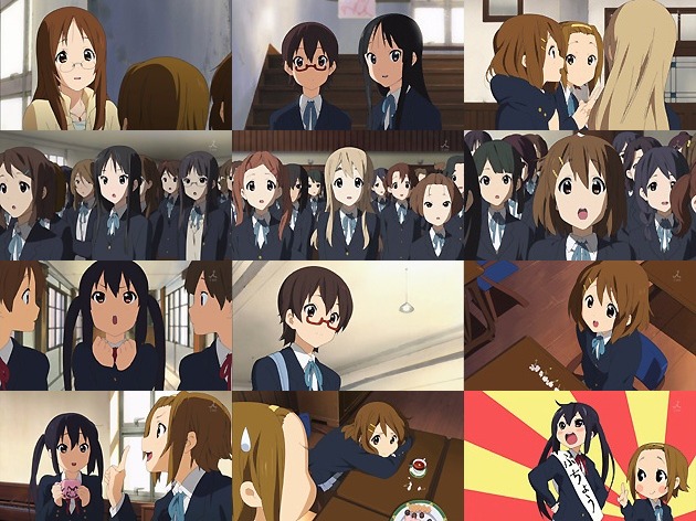 何となく澪の髪のボリュームが減ったような気がする・・・神経性の脱毛症か(^_^; 始業式で唄われる桜高の校歌・・・これもきっと音源化されますね♪ さすが京アニだけあって、これらのシーンで映るモブっ娘たちのレベルが半端ないです! まぁムギの右側の娘だけは有り得ませんがw さて、いつもの音楽室でのマターリ放課後ティータイム。しかしここで新入部員を入れないと、来年部員があずにゃん1人になってしまうという問題が。まぁそうなると必然的にあずにゃんが部長なんですが・・・これこれ、そんな妄想する前に部員1人じゃ廃部でしょ!?