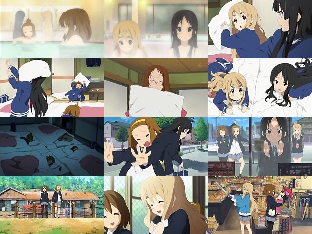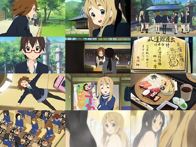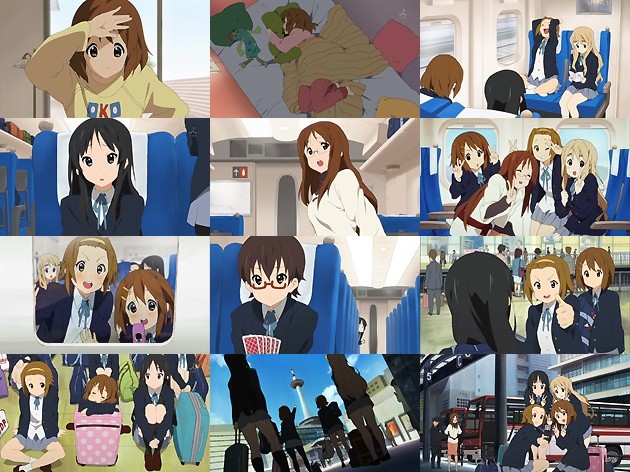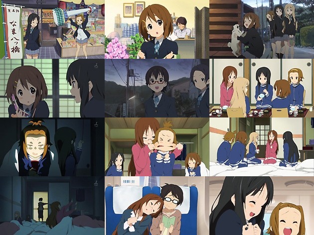 駅のホームで集団で座って説明を受ける桜高の生徒たち・・・これって結構邪魔だよなw このシーンの唯と澪のキャリーバッグはじめ、今回登場した多くのアイテムや場所は既に特定されているようで・・・(^_^; アイテムを買い揃えるのは良いとして、場所(特に民家)の巡礼は住人の方の迷惑にならないようにね!