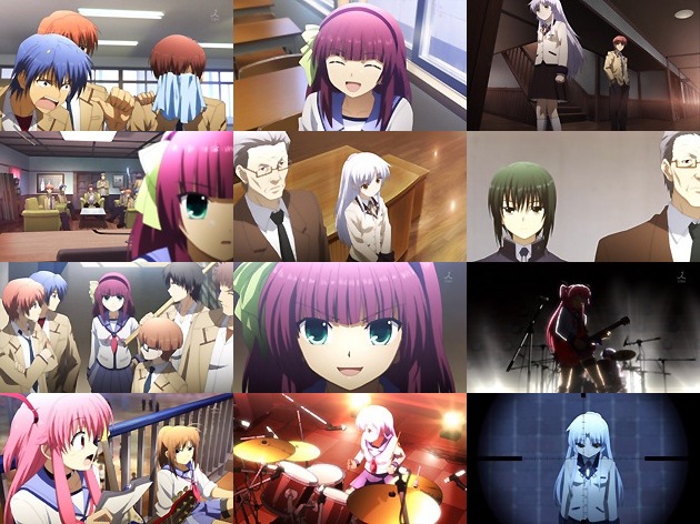 SSSメンバーの肉体的・精神的大ダメージと引き替えに、天使のテストすり替え作戦は成功。英語のテストの解答を全部カタカナで・・・などかなり悪質な答案用紙にすり替えられた天使は、テスト後に職員室に呼び出しを・・・ そして緊急全校集会が開かれ、何と天使は生徒会長職を退く事になります。つーか辞めさせられたんだよなこれ( ノД`) 後任はCV緒方恵美の直井に・・・どんなキャラだろコイツ。 天使の失脚を見事成功させたゆりは、第1話以来のオペレーション・トルネードを発動。ユイをヴォーカル&ギターに迎えた放課後ティー・・・じゃなくて新生ガルデモ。ユイ参入に際してひさ子辺りとひと悶着ありそうな気がしてたんですが、そこら辺は何も描かれませんでしたねぇ。 ガルデモのゲリラライブが開かれる中、姿を現した天使。しかしそこにはSSSを排除するような気配や覇気は全く感じられず・・・