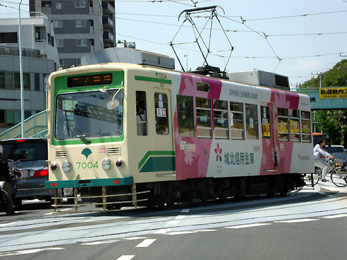 最後に趣向を変えて都電荒川線。撮影場所は飛鳥山交差点・・・都内で唯一、鉄道の軌道が一般道路内に入り込んで併走するポイントです。 写真の7000形は都電でも最古の形で、作られたのはなんと1954年。しかもこの7004号車は1次グループ(7001〜7030号車)と呼ばれる最も最初の形で、まさに最古参の車両ですね。