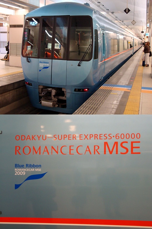 こちらは小田急のロマンスカー、最新型の60000形MSEです(撮影:小田急線新宿駅)。昨年ブルーリボン賞とグッドデザイン賞を受賞した機能美に溢れたフォルムがたまりません♪ ロマンスカー車両では初めて地下鉄への乗り入れを行った事でも知られるこの60000形、平日は4編成しか走っていないので、見れた人はラッキーな車両です。