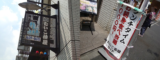 JR浅草橋駅(アキバの1つ隣りです)から徒歩4分、靖国通り沿いにあるおさかな本舗 たいこ茶屋。老舗の海鮮居酒屋なんですが、昼は1,000円バイキングでなんと刺身が食べ放題!海鮮好きとしては一度足を運んでみたい店です。