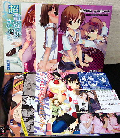 今日の戦果・・・って、買い物はそんなにしてませんけどね。 とらのあなで買った超電磁砲関連の同人誌4冊と、けいおん!関連の同人誌5冊・・・ハイ、見事に全部18禁ですw(撮影時、見えないように配置するの大変だったんだから!) あとはZOIDで6月のカレンダーと、先月のナースイベントの時の写真をゲット。そして迷い猫カフェで貰ったコースター2枚です。 次回は来月のZOID6周年&七夕浴衣DAY辺りに合わせてって感じですかねー。