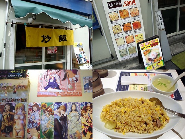 午後早めにいつもの後輩とK−BOOKSで待ち合わせ。香港から帰国後、転職&引越しと慌しい日が続いて1ヶ月半ぶりの上京だったようで。まぁ、何にせよ定職にあり付いて一安心です。 昼食は新規開拓で末広町駅近くのチャイニーズダイニング『KIICHI』へ。その暖簾、そして看板が示す通り炒飯を売りにしている店で、しかも330gの大盛りがデフォの炒飯が何と500円! 更に+100円で倍近い量の超大盛りにも出来るという、ガッツリ炒飯を安く食いたい人にはうってつけの店です。 小さく狭い入り口を開けるとそこには・・・アニメ関連のポスターがベタベタ、そして流れるアニソン・・・うわ、こういう店だったのかw 外観からは全く想像出来ませんでした(^_^; でもまぁこういった店には慣れっこですし(むしろドンと来いw)、まずは様子見のために普通の五目炒飯と焼豚炒飯を注文。14時近かったとは言え数少ない客席はほぼ満席で、後から来る人が2〜3人待ってる状態。なかなか人気はあるみたいです。そして炒飯を待っている間に貼られているポスターや置いてあるグッズをよく見ると、何気にアイマスで統一されている事に気付きました。店長の趣味かな? ちょっと可愛いホール係のお姉さんが運んで来た炒飯は、見事にご飯がパラパラ、味付けも濃過ぎず薄過ぎず、なかなかのお味。白湯スープも美味しいし、これはワンコインだからと言って馬鹿に出来ませんよ! 量も十分満足行く物でしたが、これなら+100円の超大盛りにも挑戦出来そうです。ただ、どうしても味が単調になってしまうので、点心の類がメニューに加わると嬉しいかなぁ。何にせよ、またアキバで新たな食事の拠点が出来たのは間違いありません♪