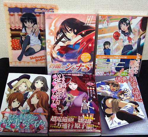 今日の買い物はOVA『灼眼のシャナS』DVD3巻と『とある科学の超電磁砲(レールガン)』DVD6巻、それにコミック版『とある科学の超電磁砲(レールガン)』の5巻(通常版&限定版)。