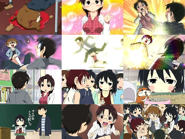 三姉妹の話、という事で『みなみけ』っぽいのかなー、とも思いましたがこれも大ハズレ。蓋を開けてみれば、ヴァイオレンスお下劣小学生アニメだったwww つーかサブタイ、「良い子」なんて1人もいないじゃんかwww このテの作品のお約束として、新任教師の矢部が赴任して来る所から始まりますが、その歓迎フルーツバスケットが丸井三姉妹のために既に命懸けw 流血沙汰上等、死人が出なかったのが不幸中の幸いです(^_^;