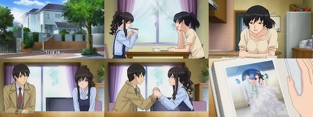 って待てぇーっ!!(汗 10年後より10分後を映せ!!ヾ(`Д´)ノ 10年後って事は20代後半で結婚し、既にマイホームを持っているってどんだけ無理したんだ純一w そっか、塚原先輩は医者になったのか。つーかもう既に40歳くらいの貫禄が(ry そして純一はなんと刑事になっていました。しかしはるかとのバカップルっぷりは相変わらず・・・普通に「君の瞳を逮捕する!」とか言ってそうだな。そして夜はラブリーちゃんとリアル手錠プレイですか。もうやりたい放題だな!(そこまで言ってない) 正直、結婚ENDって安直で好きじゃないんですが、逆にここまで見せるという事は、次週からのワカメ編は物語がリセットされて1から始まる訳ですよね。「キョン君、でんわー」「何かがおかしい」って(違