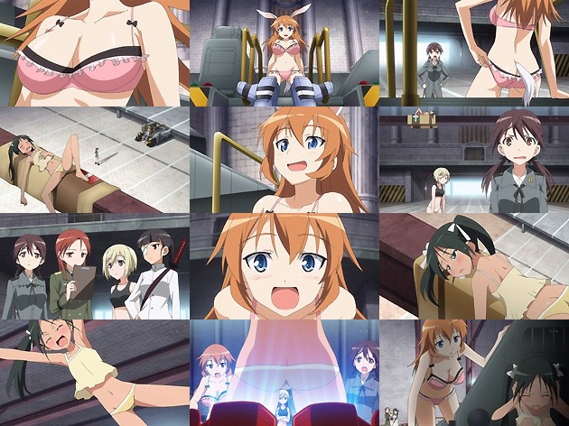 ドラム缶風呂に入る芳佳・ルッキーニ・シャーリー。あの施設には風呂は無いのか・・・第1期のようにお風呂でみんなでワイワイキャッキャな展開が望めないのは残念。 最後は速度テスト。最高速度703kmを誇るP-51D(ちなみに零戦52型で556km)ですが、950km(公式資料では870km)を誇るMe262にはまるで及ばず。そりゃ相手がジェットエンジンですからなぁ。 しかしテスト中にバルクホルンが意識を失って墜落。救助されたバルクホルンですが、疲労が著しくとても飛べる状態ではありません。ミーナ隊長はバルクホルンの飛行を禁じ、使用者の激しい魔力消耗を強いるジェットストライカーを封印処置とします。 アイキャッチ・・・芋を奪い合うシャーリーとバルクホルン。そんな二人を尻目に横から手を伸ばすハルトマンw そんなキャラだよなぁ(;´∀`) 飛行禁止となったバルクホルンは、自室で片手懸垂のトレーニング・・・お姉ちゃんすげーっ!と言うシーンですが、半ケツの方にしか目が行かないwww 光るズボンが、かえって何もはいてないみたいでイヤラシさを増長させています(* ̄∇ ̄*)