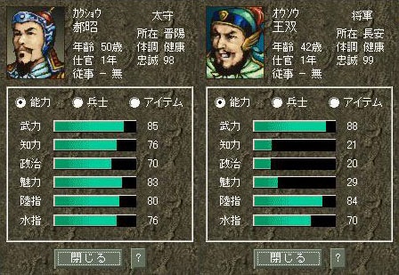 お馴染みの武将能力比べ、今回は第二次北伐で蜀軍を迎え撃った郝昭と王双です。
