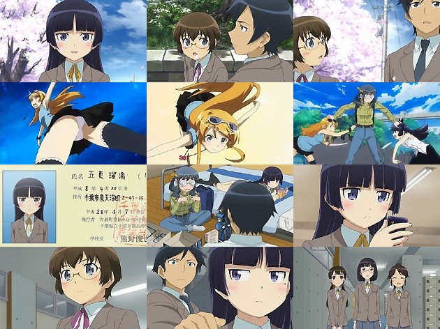 さて、京介の高校に黒猫が入学して来た所で引きだった前話。麻奈実に「今の誰?」と聴かれて、自分が黒猫の本名を知らない事に気付く京介です。つーかワタシも黒猫の本名を知ったのは放送が始まってしばらく経ってから、Wikipeiaで知ったクチですけど。 OPはまたまたマイナーチェンジされてます。桐乃と黒猫のバトルシーンで桐乃の純白のパンチラが♥ しかし今回、本編では桐乃が全く登場しないので、桐乃が観れるのは実はここだけ。物語のメインヒロインである桐乃の不在がどれだけ作品に影響を与えるか・・・この時は少し心配もしたんですけど。 さて、黒猫の本名ですが学生証から「五更瑠璃」と判明します。生年月日は平成8年4月20日、住所は千葉市東天沼町か(勿論架空の住所ですけど)。 桐乃が日本を去ってから、京介の部屋に入り浸るようになった黒猫と沙織。桐乃がいなくなってせいせいした、と言う京介と黒猫ですが、本心は沙織と同じでその不在が寂しくもあり、自分たちに黙って行ってしまった事に腹を立ててもいるのは間違い無さそう。感極まって自分を「私」と呼びそうになる沙織がちょっと可愛いです。 さて、不慣れな高校生活を送る黒猫を気に掛ける京介は、麻奈実と共に黒猫の世話を焼こうとするも、学校での黒猫は非常に素っ気無く・・・そういや桐乃が麻奈実の事を悪く言っていたから、黒猫もそんなイメージも持ってしまったのか。 しかし黒猫はクラスの中でも上手く溶け込めていないようで・・・。