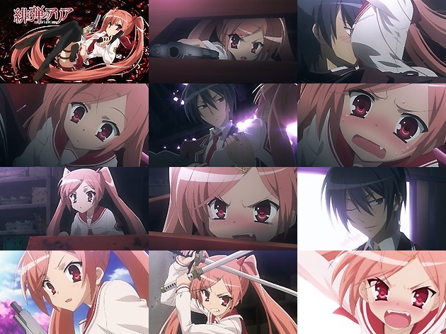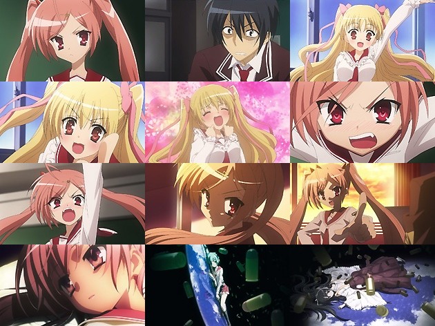 その後キンジが登校してみると、お約束通りにアリアが同じクラスに転入して来ます・・・コテコテですな。そして自分の席を勝手にキンジの隣に決めたアリアに、同級生の金髪ツインテ巨乳の峰理子(CV:伊瀬茉莉也)らは興味津々、喧々囂々。しかしそんな場を沈めるために天井に発砲するアリアも相当アレです(^_^; さて、騒がしい1日を終えて自室に戻ったキンジですが、これまたお約束通りアリアが部屋に上がり込んでいて、キンジに奴隷宣言を・・・。こうして辞めるに辞められなくなった東京武偵高校で、普通に凄腕であるアリアと、エロい事が起きると凄腕となるキンジの波乱の日々が始まるのでした。EDは中野愛子の『カメリアの瞳』。これまた格好良いメロディでOPに匹敵する名曲!OP/EDに恵まれた作品はMc.的名作になる可能性が高いです。