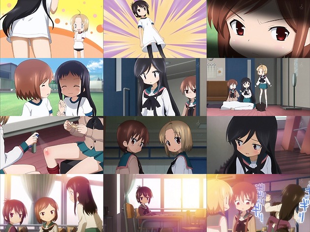この「はいてない」風に見える描写は、小野学監督が『咲-Saki-』で多用した表現ですね。確かに裾をブルマに入れないと体操服のエロさは別ベクトルで上がっていくよなぁ。しかしトオルが裾出しするとワンピースになってしまうのには飲んでたウィルキンソンの辛口ジンジャーエール吹いたwww さて、今日もトオルを絶賛ストーキング中のユタカですが、見兼ねた友人のミホ(CV:斎藤桃子)がインターセプト。ちなみにこのミホも本当はトオルのファンのようで・・・何気に人気者だったんだなトオル。 体育の授業で膝を擦りむいたナギを保健室に連れて来たユー子は、虚弱体質ゆえに保健室で倒れていた佐藤を踏み付け・・・更に後から来たるんにも踏まれた佐藤ですが、るんに踏まれた事にはかえって喜び・・・ダメだこいつ、こっち側の人種だ。で、何が言いたいかと言うと、ナギの傷は俺が舐めて治す!ペロペロ(^ω^) >ユー子さんが汚物を見るような目で見てます 放課後、勉強で分からない所をトオルに習うユタカ。しかし真性なのかわざとなのか、さっぱり覚えられないユタカに半ギレ状態のトオル・・・そこにミホがやって来てユタカを強制排除。ホッと一安心のトオルですが、いなければいないでちょっと寂しいとか感じちゃってるトオルは既にユタカの術中に堕ちてる!? そしてそんな寂しさを紛らわすのため、ユー子へのベアハッグで今回は締め(絞め技だけに)。あー、やっぱトオルは一家に一人欲しいやねー(* ̄∇ ̄*)