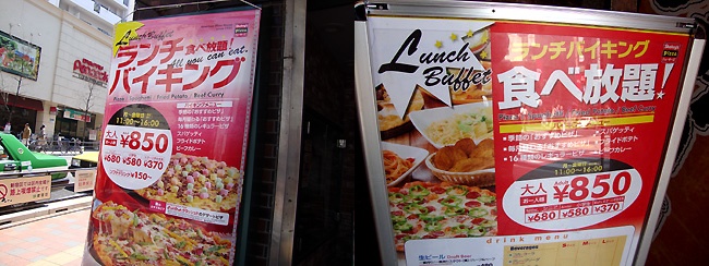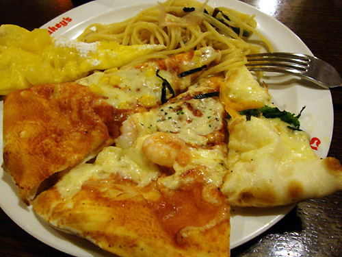 店舗数は多くないものの、一応全国展開しているこのチェーン店(上記リンク先で最寄りの店を調べてね♪)、大学時代は柏店(現在はなくなっちゃたみたい)で結構お世話になったもんです。 最近、担当しているメイン得意先の1つが高田馬場に移転したために、高田馬場近辺に通う事が多くなったのですが、駅の近くにシェイキーズがあるのを発見して久々に入って来ました。 ランチバイキングは11:00〜16:00迄。850円+ワンドリンクで焼き立てのピザやパスタなどが食べ放題となります。まさにMc.さんのためのようなお店!