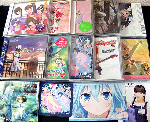 つーかもう部屋に置き場所がなくなってきたよ・・・家の隣のビルにあるレンタルルームでも借りるか?(;´∀`) 本日購入は『神のみぞ知るセカイU』ED、『DOG DAYS』ED、『電波女と青春男』ED、『聖痕のクェイサーU』ED、『Aチャンネル』OP、『STEINS;GATE』ED、『まりあ†ほりっく あらいぶ』OP&ED、『日常』ED、『よんでますよ、アザゼルさん。』OP、そして『そふてにっ』ED。 これであとは明後日発売の『星空へ架かる橋』のOP&EDを購入すれば今期の購入予定はほぼ終了・・・『Aチャンネル』のEDだけがまだ発売日未定(挿入歌集に収録とか?)で保留ですけど。あ、あとあの花のOPか。 『聖痕のクェイサーU』EDには4つ折りブックレット、『日常』EDにはコースター、『電波女と青春男』EDと『DOG DAYS』EDにはポストカードが特典として付属。『神のみぞ知るセカイU』はOPとEDの購入連動特典のポスターが貰えたんですが、どうせ貼らないので辞退しました。 今日の目玉はやはり『Aチャンネル』OPでしょうか。あと、何気に好きなのは『よんでますよ、アザゼルさん。』OP♪ あと、『まりあ†ほりっく あらいぶ』のEDはあの山本リンダの『どうにもとまらない』のカバー。まさに作品世界にピッタリw