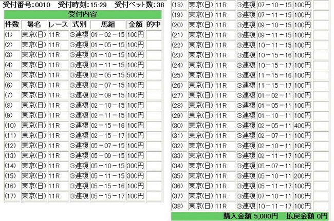 トーセンラーが駄目でも世界のデットーリが何とかしてくれる!という怒涛の38点買いは果たして・・・