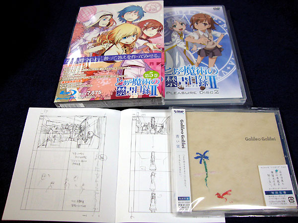 禁書UのBD5巻にはいつものブックレット&短編小説の他に特典ディスク付き。あの花OP(発売されるの遅いよ…)は初回特典でアニメOPの絵コンテが付属。これでお値段据え置きの1,223円!(テレビショッピングかよ