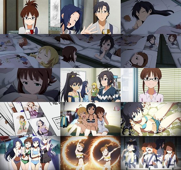 Pの部屋では酒盛りが・・・あ、そうか、あずさは未成年じゃないんだった。19歳の律子は・・・一応ジャワティですねそうですね。 疲れて皆が寝静まった後、来年もまた来たいね、と楽しく話す春香と真。しかしここで伊織が厳しい現実を突き付けます。1年経てば売れている娘、売れていない娘も出る。皆で一緒に旅行なんてもう無理・・・それでも皆と過ごすこの時間を大切にしたいと思う春香でした。 旅行を終えて事務所に帰って来た面々。その間、社長と小鳥によって1つのプロジェクトが始動していました。ユニット『竜宮小町』・・・伊織、あずさ、亜美を3人組として売り出すこの企画、ゲーム版「2」ではこれによってこの3人のプロデュースが不可能になり、竜宮小町のプロデューサーとなった律子自身のプロデュースも不可、そして極付けはイケメン男性ユニット『ジュピター』の登場で大騒動の元となり、多くのファンのトラウマとなったユニットです。まぁアニメでは直接プロデュース出来る訳ではないですけど、やはりこの3人が抜けるような印象は絶対マイナスになるよなぁ・・・。この言わば「劇薬」をどのようにスタッフが調理するのか、お手並み拝見と行きましょうか。 EDは浜辺でのショット満載・・・響が何気に良い身体をしている♪ そしてここでも千早苛めw 千早は今、泣いていいんだ・・・ そして花火を楽しむ亜美真美ですが・・・あれ?花火の時は水着じゃなかったよね?(1つ上のキャプ詰め参照)何気にミスった? 浜辺、水着、バーベキュー、お風呂、そしてピロートークとお約束たっぷりの話でしたが、それでも将来への不安や、それを口にした伊織を含む新ユニットなど、物語がようやく動き出した感もある内容の濃い話でした。