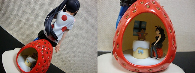 そして隠されたギミックその1ですが・・・なんと台座のイチゴの裏にはEDに登場したアリンコ澪がw 普通に飾ると全然見えなくなってしまうのが残念ですけど。 そして更なる驚きの仕様は・・・