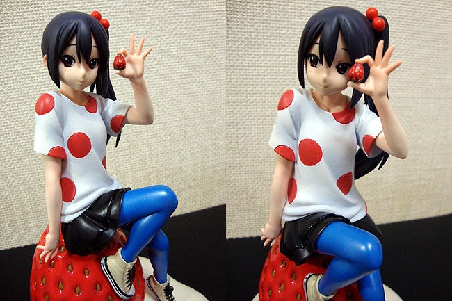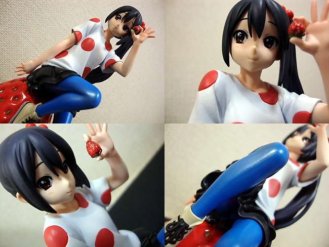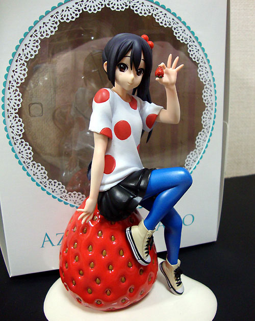 それがこれ、京都アニメーション通販謹製『けいおん!!』中野梓1/8フィギュアです♪ 観ての通り、2期の上半期EDの衣装を来たあずにゃんが巨大イチゴに座った可愛らしいフィギュア。デコマスを見た瞬間に一目萌えし、速攻予約ボタンをポチッた逸品です。ちなみに送料込みで¥8,600也。