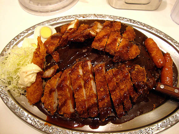 そして週末の夜になるとどこからともなくアキバに集まってくる痛車の数々。コミケも近いので皆さん気合い入ってますなぁ。 つーか最近は平日の都内でも普通に痛車が走っているのを見掛けるようになりました。まだまだ奇異の目で見られる風潮はありますけれど、そのうちデコトラみたいに市民権を得られる日が・・・来ないかなぁ、やっぱ(^_^; K-BOOKSでちょっと売る物があったので寄った後、いつもの後輩とディナーに・・・今回は数日前のシルシルミシルで紹介されていた事もあって、ゴーゴーカレーにカレーを食いに行きました。あのドロドロのルーを見ていたらもう辛抱たまらなくなりましてw で、昭和通り沿いの秋葉原店に行った所、同じようにTVを観て来たのかなかなかの混雑っぷり。10分ほど待たされた後、かなり日本語が不自由な店員に案内されて席に通されました。本当はカツカレーを食うつもりだったんですが、メニューにちょっと気になる物があってそっちに変更・・・