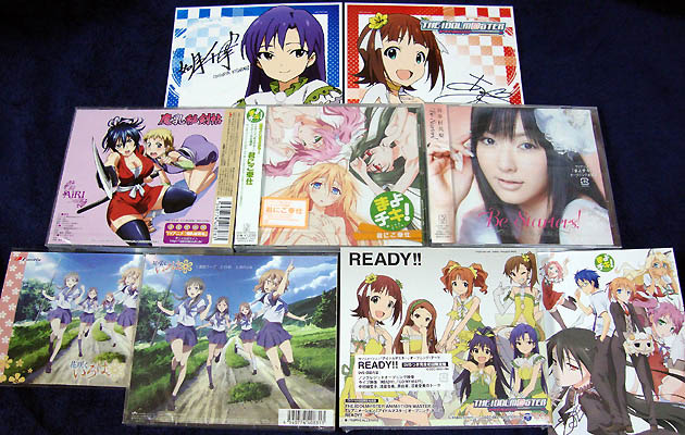 購入したのは『花咲くいろは』新OP、『THE IDOLM@STER』OP、『魔乳秘剣帖』OP&ED、『まよチキ!』OPとED。オマケ類も多く、いろはOPとまよチキ!EDにはポストカード、アイマスOPには春香と千早のサイン色紙が付いて来ます。
