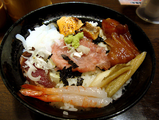 ・・・微妙に看板の写真よりもショボいですが、まぁ看板に偽りはナシ。つーかこれを2つ頼んで、具材を片方の丼に移せば780円でかなり豪華な海鮮丼になるんじゃないかなw