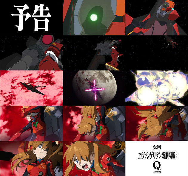 そして多くの方が劇場で観た&DVD/BDで持っているにも関わらず、実況ChやTwitterで仲間と生視聴で盛り上がった事でしょうw 勿論ワタシも例に漏れずですが( ̄▽ ̄)ノ で、さんざん告知を引っ張って来た続編『Q』の上映時期ですが、ここで制式に来年秋と発表されました。新たに新予告もが公開された訳ですが・・・弐号機が宇宙空間でライフル持って戦ってる!?何このガンダムwww しかも月には巨大化綾波の物と思われる血痕、そしてアスカのプラグスーツには無数の修復跡が。そしてこの修復跡は、旧劇場版で量産型に捕食された弐号機のダメージ箇所と重複する事が解明されています。「Q」は序破急の「急」であると同時に、旧作の「旧」も兼ねているのでは・・・なんて一部では囁かれていますが、真相はいかに。 それに忘れてはいけないのは『Q』は完結編ではなく、まだ『?』という4作目が残されている事。『序』が2007年、『破』が2009年、『Q』が2012年という事は、『?』が上映されるのは物語が始まるの2015年とかですかね?少年エース連載版コミックもその頃には一段落着きそうですし、まさに胸熱な流れですなw