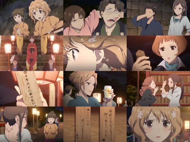 あー、終わっちゃいましたねぇ。 正直、話の主軸がややぼやけていたようにも思いますが(緒花の成長記、喜翆荘のドタバタ劇、恋愛ドラマ、どれを取ってもメインとしては弱い)、喜翆荘に集まった人たちのいろんなドラマをオムニバスとして楽しめたかと思うと、2クールはあっという間でした。 それに多くの人たちがダメ人間である事も、ある意味リアルな人間ドラマに拍車を掛けたと思います。ちゃんとした人格者だったのは豆じいだけだったんじゃないかな。でも一番好きだったのは勿論蓮さんw ヒロインは・・・正直、あまり好きな娘はいませんでした。敢えて言うなら修学旅行編から急成長を見せた結名ですかね。どこかメンヘラの気がある菜子、全く空気読めない緒花はまだしも、自己中の恋愛至上主義者だったみんちの事は、最後まで好きになれませんでした。むしろ巴さんくらいはっちゃけてた方が好感がw 最後に・・・今、一番聖地巡礼してみたい場所は石川県の湯涌温泉です。そう思わせるだけの作品ではありました。