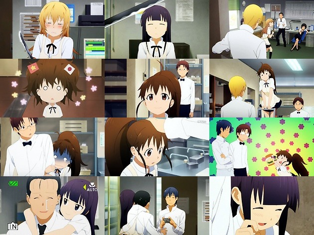 音尾さんのように自分を甘やかしてくれる(単に押しが弱いだけだけどw)人が今のワグナリアにはいない、と嘆く山田・・・そう言って相馬の胸に身を預ける山田を観るに、カップリングとしてはやはり相馬×山田なのだろうか? 自分の事を一切語ろうとしない相馬に対し、疑念を抱いた山田はぽぷらを誘って相馬の身辺調査を開始。まずはロッカールームで待ち伏せを・・・って、こんなにロッカーが必要なほど店員いねぇよこの店w そこで「人質の生命はない」という物騒な電話をしている相馬の姿を観てビビる二人・・・まぁ勿論観られている事に気付いている相馬のハッタリですがw でもそんな自分が“かわい相馬さん”と呼ばれるとは相馬も想定外だったようです(;´∀`)