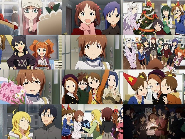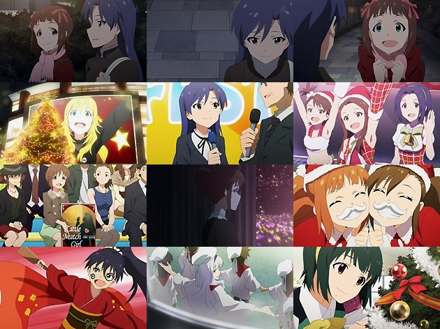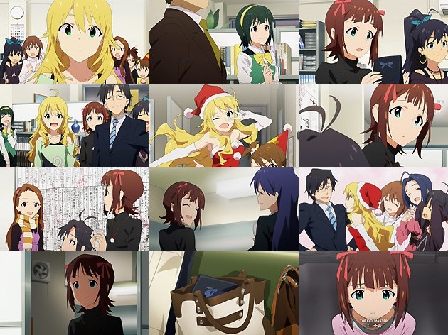 帰り道、以前と違って皆売れっ子になってしまった事に一抹の寂しさを吐露する春香。奇しくも夏合宿の回で伊織が言っていた予言が的中してしまいましたね。それでも皆と過ごすクリスマスを心待ちにしている春香の仲間を想う気持ちは心が洗われますなぁ。 さて、クリスマス当日。やはり皆それぞれ多忙な時間を過ごしています。竜宮小町のライブ、やよい&真美のお茶の間突撃サンタ、真&響の正月番組収録、貴音のスカイツリーイベント、小鳥さんは事務所でツリーの飾り付け・・・やっぱ独りなのね( ノД`)