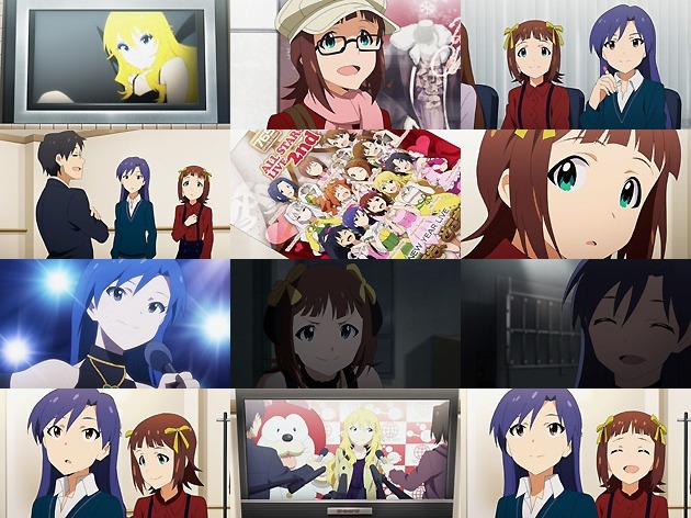 街角のオーロラビジョンには美希の新CMが・・・いくら何でもケバ過ぎだろこれ(;´д`) そんな同僚の活躍を見上げる春香さんが今回の、そして次回以降続きそうなラストの展開の主人公となりそうです。 年明け早々に行われる765プロのセカンドライブに向けて多忙な日々を送る面々(最終回はこれですね)。そんな中、春香と千早に飲み物を奢ろうとしたPの財布に穴が開いている事を知った春香・・・ハイ、分かりやすいプレゼントフラグ来ましたー! すっかり立ち直った千早は歌番組でもこれまでにない良い表情を見せるようになり、Pも春香も一安心。そこで春香は今年も皆と集まってクリスマスを祝いたい!と提言しますが、去年と違って全員売れっ子になってしまった今年、それは現実的に難しく・・・。それでも春香の願いを聴き遂げるためにPが調整に入って、満面の笑みの春香です。 TVでは再び美希が。このブラウン管越しの演出が続くのは、同じ765プロの中でも美希が頭ひとつ抜け出た人気が出たって事でしょうか。この時点では春香は年下の後輩にやや遅れを取っているみたいです。 そんな美希ですが、インタビューの質問で普通に「ハニー」の存在を公言・・・まぁハニー=ファンと捕らえれば無問題ですが、さすがにこれは事務所で叱らないとダメだろw