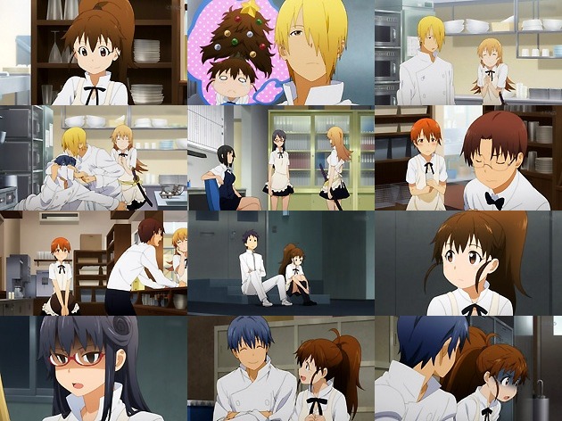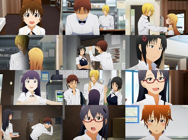 松本のクルクル髪にキュウリを巻き付けてからかう佐藤・・・ぽぷらの代わりに松本で遊んでいるようです。怒ってキュウリを投げ付ける松本に「食べ物を粗末にするな」と言う佐藤ですが、お前は食べ物をおもちゃにするなw 何気にぽぷらが辞めるという事に動揺している佐藤・・・ぽぷらへの悪戯もいつものキレがないです。八千代もぽぷらの将来のためなら、と悲しみを乗り越えようとし、店長はおやつを分けてくれ、久々登場の音尾さんも真面目に働いてくれるぽぷらの事を惜しみ・・・ぽぷらは自分が辞める事になっている雰囲気に気付きますが、このバイトが楽しい事、皆と別れたくない事もあってテンパッて松本の胸で泣きじゃくり・・・しかしここで松本がいとも簡単に結論を出します。「成績下がってから考えたら?」と(そりゃそうだ)。 すっかりぽぷらを送り出す雰囲気のワグナリアスタッフルーム。涙ながらに別れを惜しむ小鳥遊ですが、ぽぷらはあっけらかんと「私、辞めないよ?」・・・またも山田の早とちりと知った小鳥遊は逃げようとする山田を捕らえ・・・w いつものワグナリアに戻り、第1期同様に小鳥遊・ぽぷら・まひるでお客さんを迎える所で締め・・・あ、何か割り込んだw