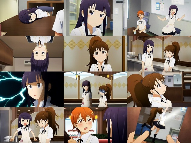 破損報告表に手が届くようになった=背が伸びた!と喜ぶぽぷらですが、ちっちゃい先輩の背が伸びた事は小鳥遊にとっては由々しき事態。つーか佐藤まで落ち込むのか・・・確かにちっちゃいのを散々弄んで来たからなぁ。 報告表の貼る位置を下げたに違いない!と店長に食って掛かる小鳥遊・・・だから「年増」は禁句だと言うのを学習してないのかコヤツは。いつも報告表に記入している山田が位置は変わっていない事を証明するも・・・なるほど、いつも書いてる山田なら間違える事は無い、と。 そして第1期同様に最終回になってようやく台詞がもらえた松本。普通を目指す故に普通になれない松本は第1期と変わらず・・・だから小鳥遊は15歳以上を「年増」と呼ぶのはやめとけw 俺みたいに心の声に留めておけ!