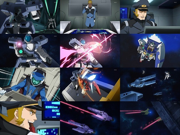 ここで戦場に第3の勢力が現れます。連邦艦隊の背後に突如、戦艦2隻とMS型10機以上のUE勢力が現れ、連邦艦隊に襲い掛かります。まさに前門の虎後門の狼状態に陥ったスニッカーズさん・・・つーかグルーデックは「攻撃はしない」と明言してるんだから、ここは早々にUE側に対処すべきでしょう。無能な司令官が迷っている間にも、戦場では兵士たちが命を散らせて行くんですから。 グルーデックはこの事態に、隙を突いての逃走よりもUEの撃滅を選択。この人も甘い甘いw ディーヴァのMS隊は連邦軍を守ってUEを次々と撃破・・・おぉっ!!!ラーガンが遂にUE初撃墜を記録! そんな中、戦闘中に敵の動きが読める特殊能力に目覚めるフリット・・・はいはい、ニュータイプニュータイプ。 グルーデックはUEの戦艦に対してディーヴァの主砲を放とうしますが、その正面にはスニッカーズ艦が・・・いいぞ!まとめて撃っちまえ!(ぇ