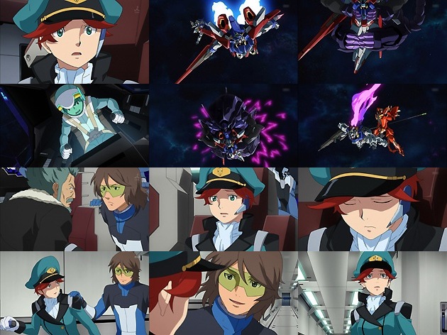 ハッスル爺ちゃんの奮戦を知り、救出のために再びゼハートとザナルドの前に立ち塞がるキオ・・・あー、爺が何のために捨て石になったんだか。戦場に舞い戻るキオの護衛にオブライトが任じられた時は、オブライト死亡フラグかと思ったんですが全然そんな事なかったんだぜぇ?ワイルドだろ?(どこが キオの余計な行動のため、ザナルドに捕獲されるAGE−3・・・オービタル、いいとこ全く無しだなぁ。プラモ売れんぞこれじゃ。 自分が艦に戻るまでの間、フリットの相手をゼハートに命じて突き飛ばすザナルド外道だなw そんなゼハートですが、手負いのAGE−1を討つ事も能わず退散・・・本当にキオ編のゼハートの弱体化は目を覆うばかりです。 キオ救出のために敵前回頭をしてフォトンブラスターキャノンを撃て、とナトーラたんに命じるフリット。しかし艦と乗組員を危険に晒すその命令に躊躇するナトーラ・・・その事を後でフリットに咎められますが、ここは口も立つイケメソ・アビス少佐の助け舟に救われます。つーかフリットの老害ここに極まれり。孫を救うために艦と乗組員を犠牲にする事も厭わないとは。 落ち込むナトーラを励ますアビス。こういうポイントポイントで得点を稼ぐのがモテる男というものなのか。でもこの人にはぜひ艦を救って戦死するフラガマンのポジションであって欲しいな(死んでなかったけどなフラガマンw)。