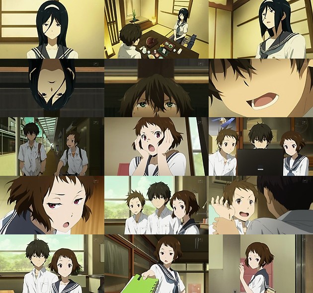 真犯人を探すために再度映画を見返す3人。まずは映像の稚拙さが問題とされますが・・・補習をサボって古典部に来ていた里志が同級生に捕縛され、続いて図書委員のある摩耶花も部室を去ってしまいます。普段奉太郎にはツンな態度が多い摩耶花ですが、謎解きを奉太郎だけに任せて去るバツの悪さからちょっとだけ謝る所が可愛い。世間離れしたえるよりも、最近は摩耶花の可愛さにちょっとずつ目覚めつつあるMc.さんです♪
