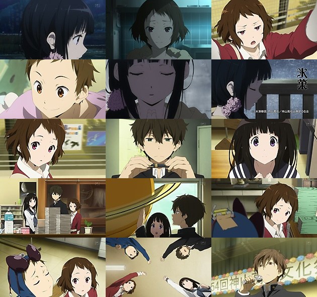 OP無しのアバン、カンヤ祭を前日に控えた古典部の面々(あ、キャプ詰めの順番が一部間違ってる・・・)。wktkな里志や不安げな摩耶花など、想いはそれぞれのようで。そんな中、神社で神頼みをするえる。「あの山を乗り越えられますように」・・・あの山?えるが越えるべき山とは一体何の事なのか??それはすぐに判明する事に。