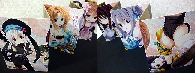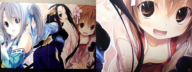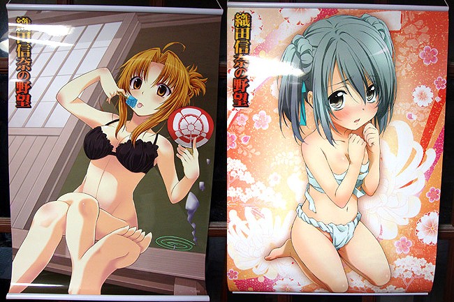 『織田信奈の野望』BD1〜6巻購入特典として、A2サイズの両面タペストリーが貰えました。絵柄は原作絵の信奈がブラのみノーパンで縁側でくつろぐ姿と、アニメ絵の半兵衛ちゃんの恥じらいの下着(?)姿。 勿論変態紳士の諸君が飾る絵柄は・・・「こっち」だよな?w