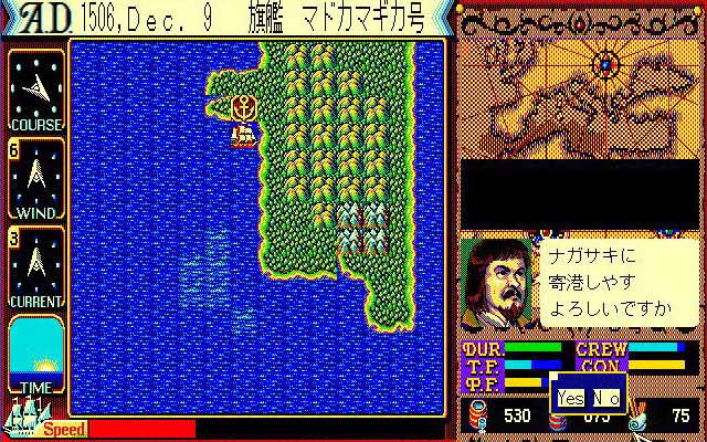 黄金の立像探しの時に苦労した経験から、艦隊は十分な量の食料と水と売却用物資、それに金貨を満載して出航。航海ルートとしては、まず一気に大西洋を南下して喜望峰を目指し、ケープタウンで補給。その後東進してインド洋に出て、そこから北上してインド亜大陸を目指します。ここでインドの各港を同盟港として、特産品の香辛料を購入。その後東南アジアを経て東アジアへ・・・。これまでにない長距離航海となります。