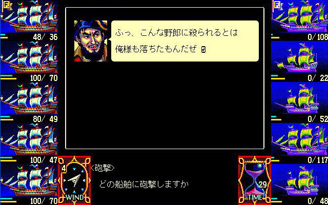 しかし航海経験レベル1の男を船長に据えると、艦隊全体の足を引っ張る事に・・・ここは旗艦航海士としての採用に留めます。もっと早く出会っていれば良かったのにね。