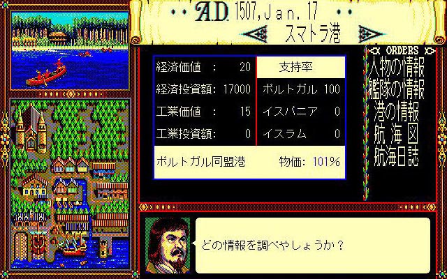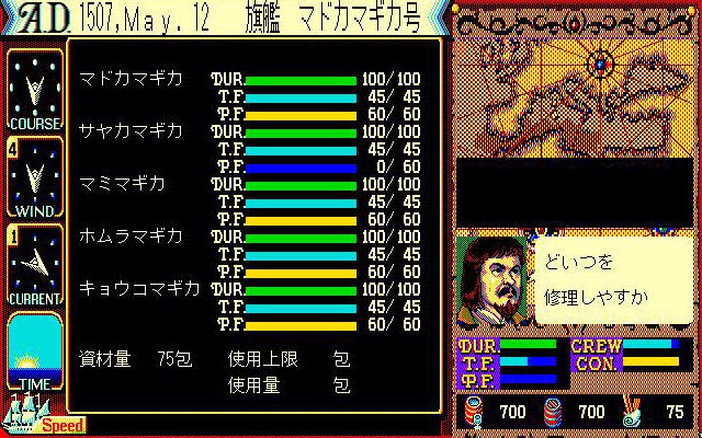 マダンを出航してから実に20日。ようやく南米・チャンチャン港に到達!途中、嵐も敵艦隊の襲撃も無く順調な航海だったとは言え、さすがに水と食料が不安になっていたのでここで補給です。こまめな補給こそ、このゲームで失敗しない鉄則ですな。